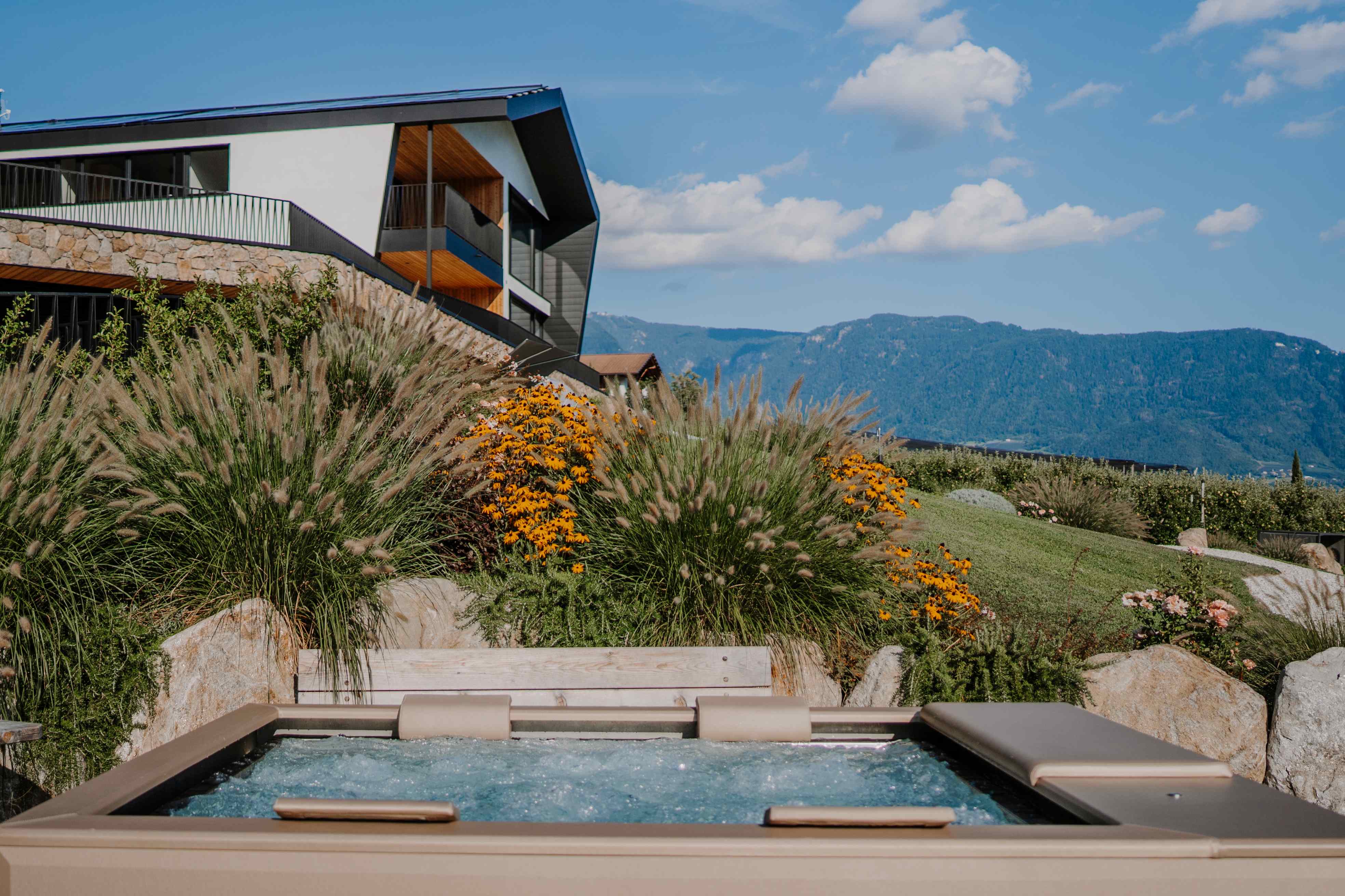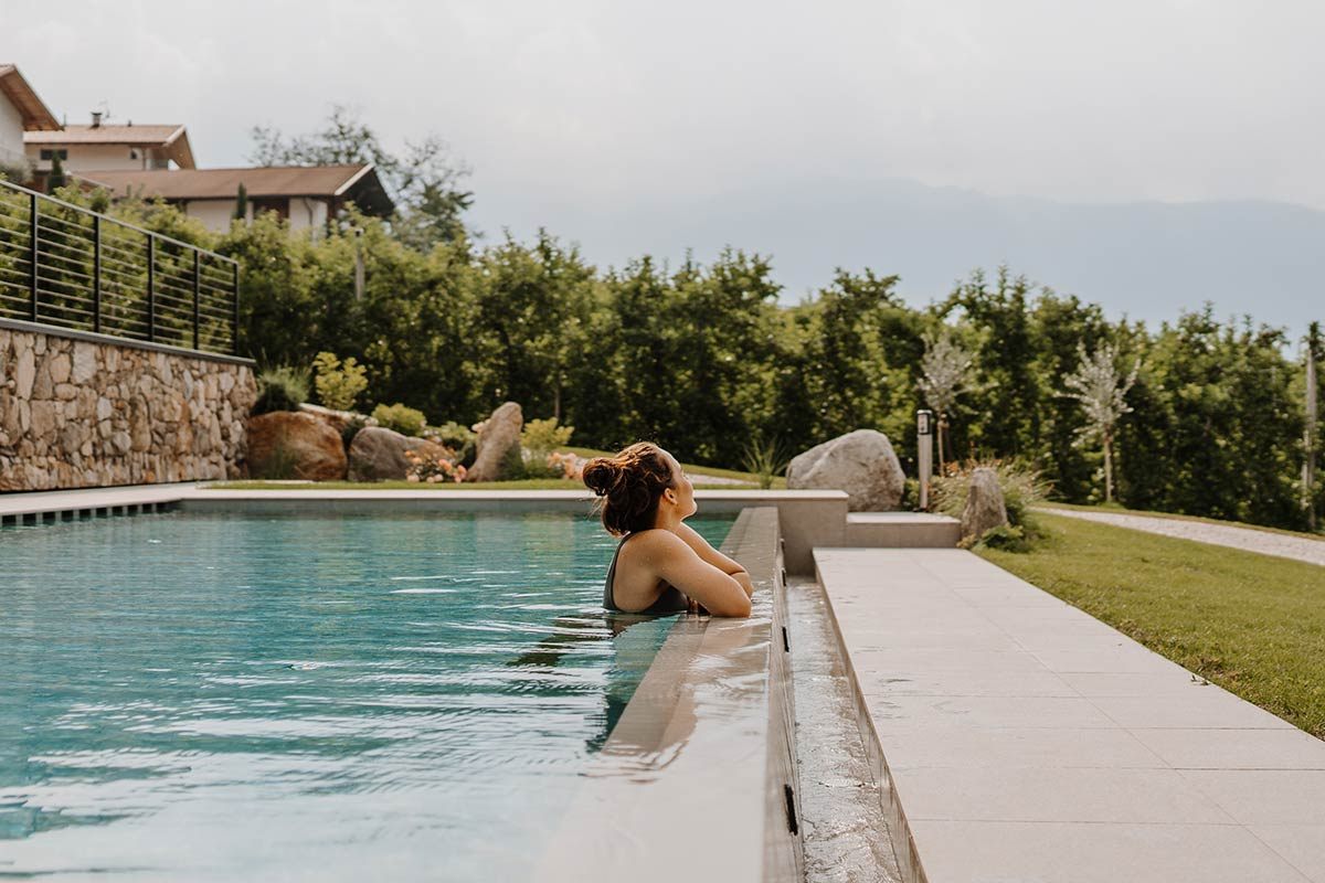 Morgens einfach über die Terrasse, barfuß in den Garten, den Tag mit ein paar Bahnen im Salzwasser-Pool beginnen und die Stille genießen. Oder sich nach einem Ausflug ein paar Stunden Ruhe gönnen, ins erfrischende Nass eintauchen und vor der herrlichen Südtiroler Bergkulisse die Seele baumeln lassen. Ab Mai 2025 sorgt unser 35 Grad warmer Whirlpool aus Edelstahl für entspannende Luxusmomente im Garten.